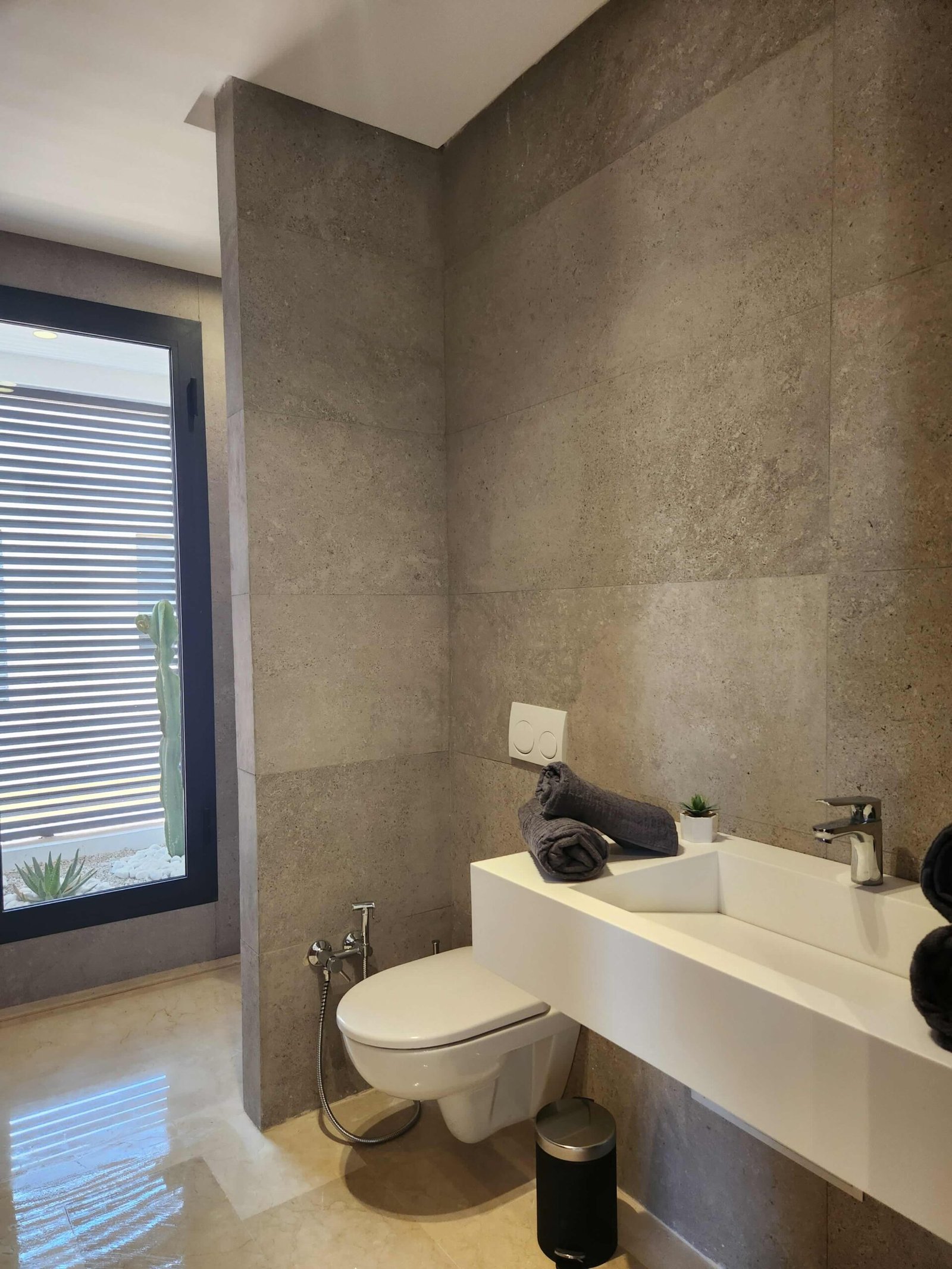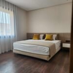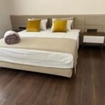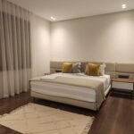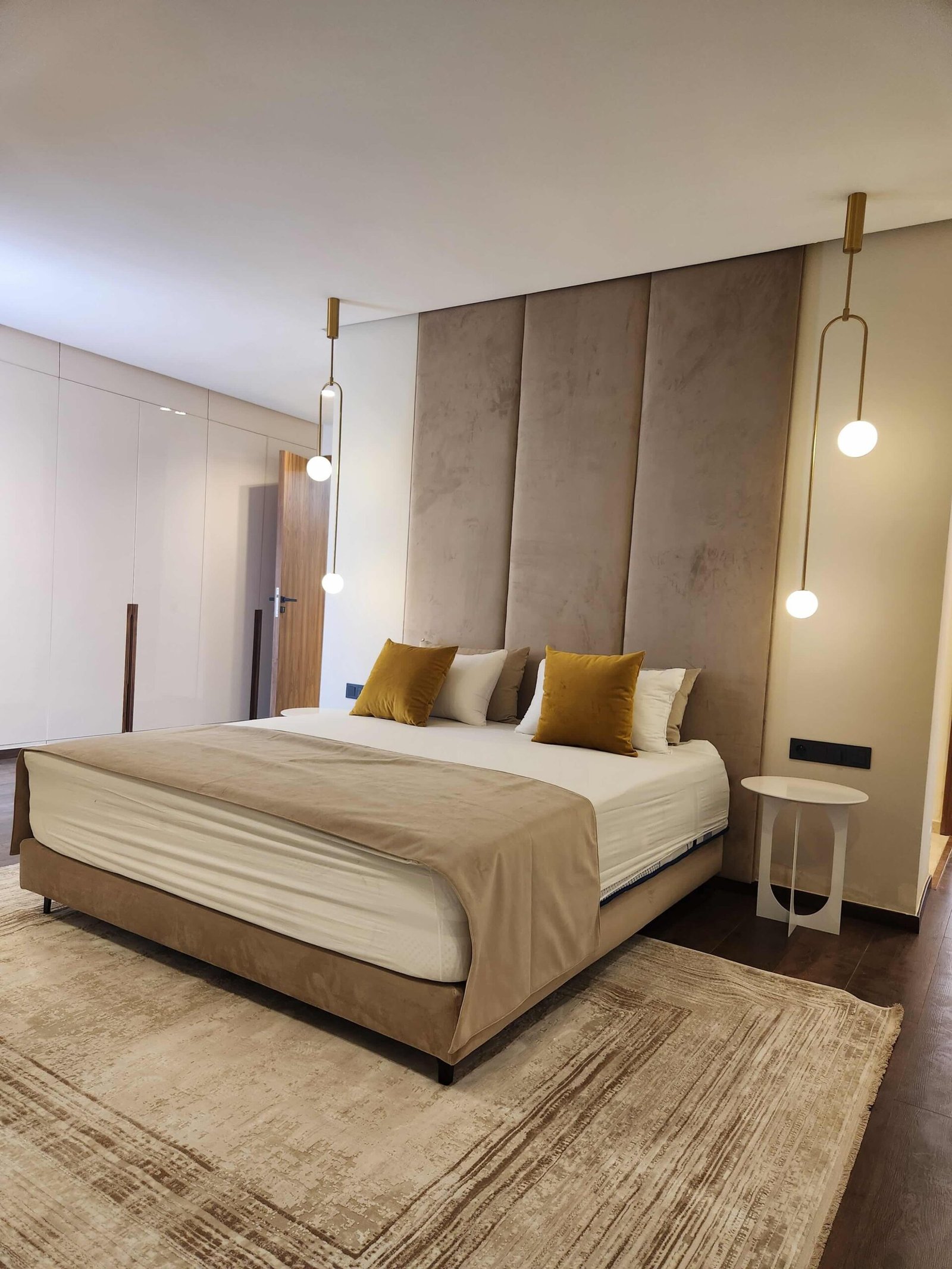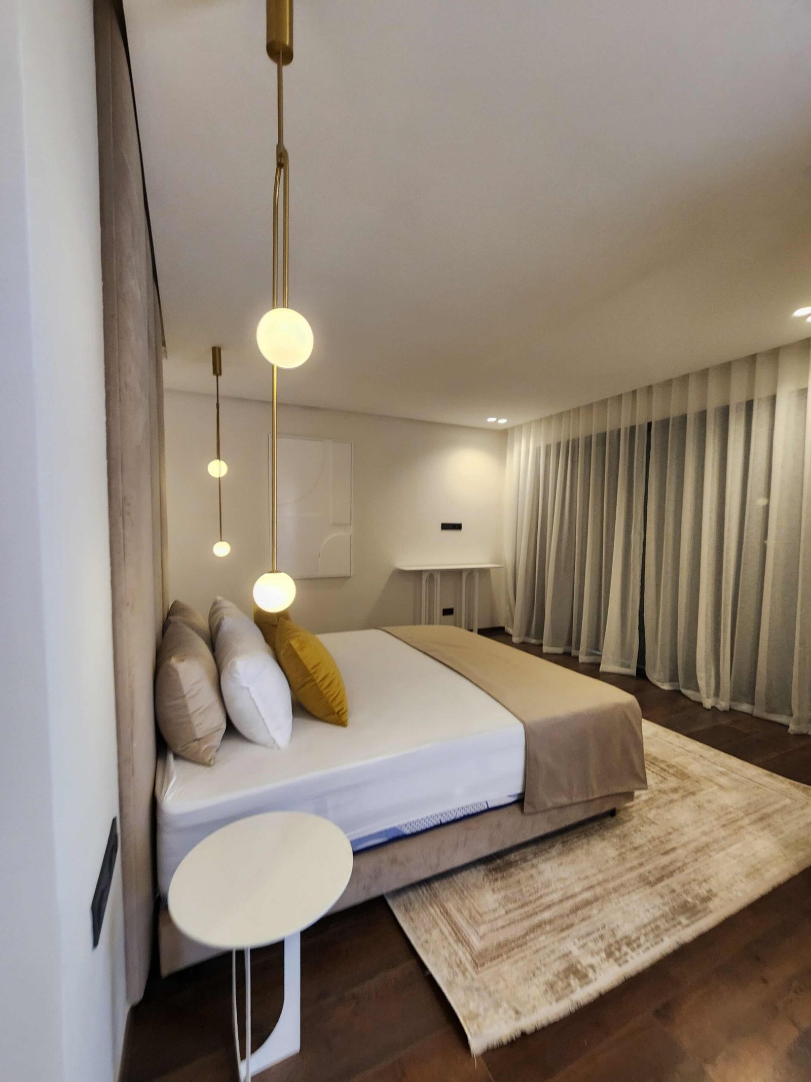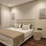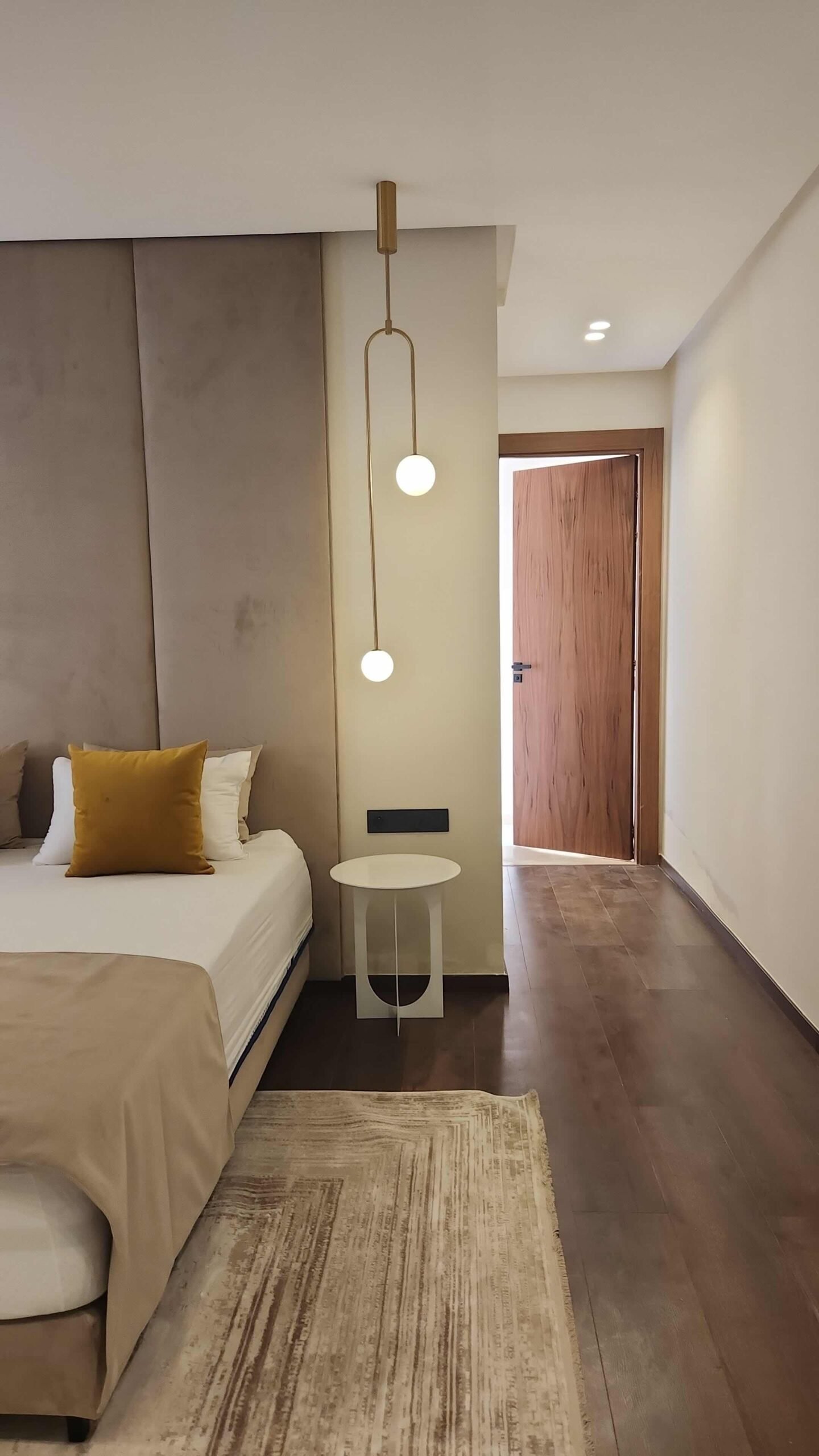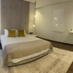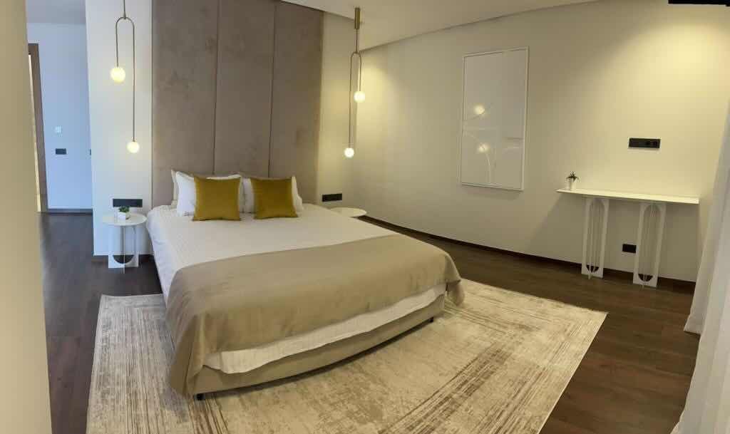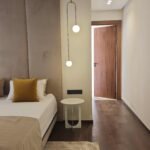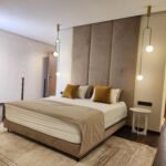 Les chambres, pensées comme des suites hôtelières, combinent confort et esthétisme : murs habillés de textures nobles, luminaires indirects, éléments en bois naturel, linge de lit haut de gamme.